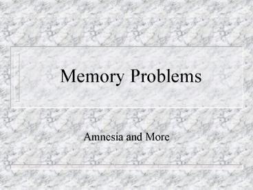 - Input Theories - (Cermak) perhaps amnesiacs do