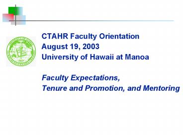 CTAHR Faculty Orientation PowerPoint PPT Presentation