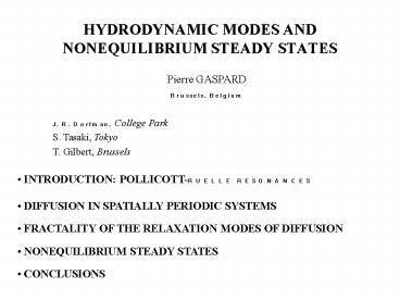 Pierre GASPARD Brussels, Belgium J. R. Dorfman,