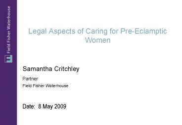 Title: Legal Aspects of Caring for PreEclamptic Women