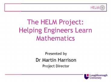The HELM Project: Helping Engineers Learn Mathematics PowerPoint PPT Presentation