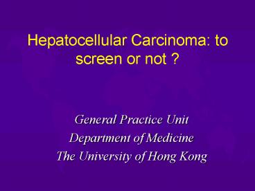 1Hepatocellular Carcinoma to screen or not ?