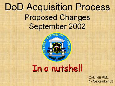 Title: DoD Acquisition Process Proposed Changes September 2002