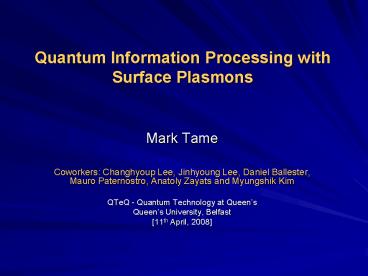 - Applications - Nano-plasmonics and QIP