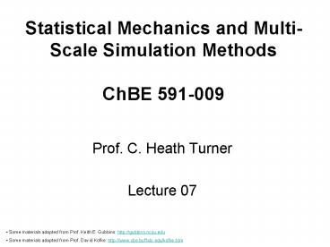 <Notice: Removed> Statistical Mechanics and Multi-Scale Simulation Methods ChBE 591-009 PowerPoint PPT Presentation