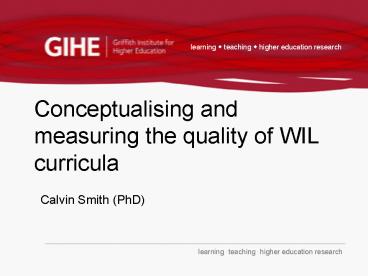 Title: Conceptualising and measuring the quality of WIL curricula