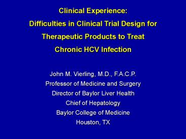 Chronic HCV Infection John M. Vierling, M.D.,