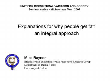 1 UNIT FOR BIOCULTURAL VARIATION AND OBESITY