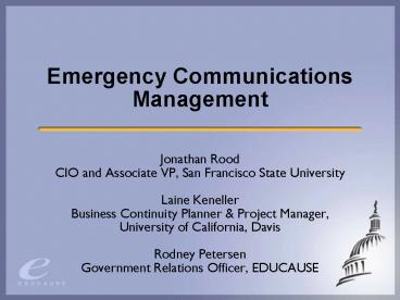 <Notice: Removed> Emergency Communications Management PowerPoint PPT Presentation