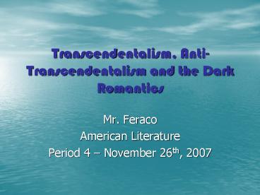 Transcendentalism, Anti-Transcendentalism and the Dark Romantics PowerPoint PPT Presentation