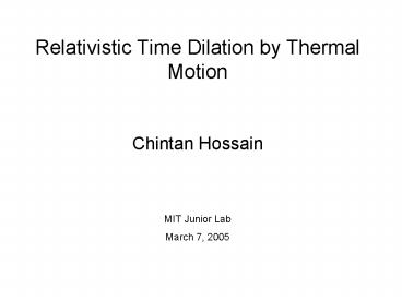 Relativistic Time Dilation by Thermal Motion PowerPoint PPT Presentation