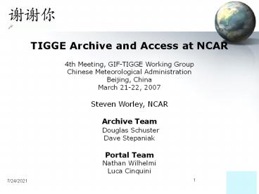 TIGGE Archive and Access at NCAR PowerPoint PPT Presentation
