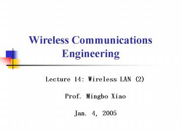 Lecture 14 Wireless LAN (2) Prof. Mingbo