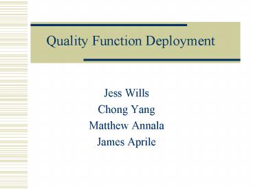 Title: Quality Function Deployment