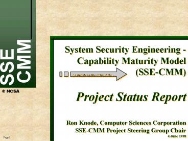 Title: System Security Engineering Capability Maturity Model SSECMM