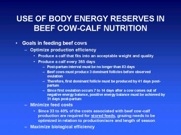 USE OF BODY ENERGY RESERVES IN BEEF COWCALF NUTRITION PowerPoint PPT Presentation