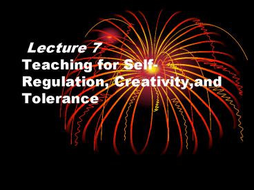 Title: Lecture 7 Teaching for SelfRegulation, Creativity,and Tolerance
