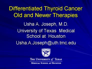 Title: Differentiated Thyroid Cancer Old and Newer Therapies