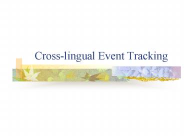 News Events Yiming Yang, Jaime Carbonell etc. - The BBN Crosslingual Topic Detection and Tracking