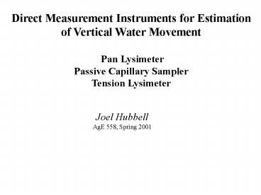 Vertical Water Movement Pan Lysimeter Passive