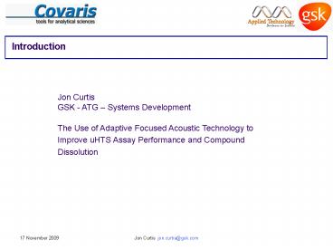Jon Curtis GSK - ATG Systems Development The