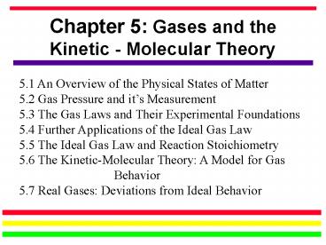 Stoichiometry 5.6 The Kinetic-Molecular Theory A