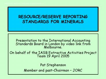 Title: RESOURCERESERVE REPORTING STANDARDS FOR MINERALS