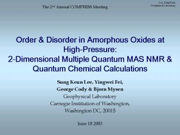 - Sung Keun Lee, Yingwei Fei,