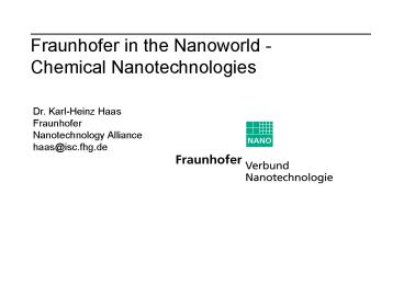 Title: Fraunhofer in the Nanoworld Chemical Nanotechnologies