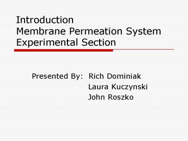 <Notice: Removed> Introduction Membrane Permeation System Experimental Section PowerPoint PPT Presentation