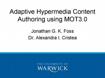 Adaptive Hypermedia Content Authoring using MOT3.0 PowerPoint PPT Presentation