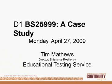 30D1 BS25999 A Case Study QUESTIONS? Tim