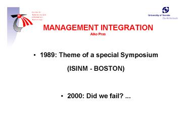 MANAGEMENT INTEGRATION Aiko Pras PowerPoint PPT Presentation