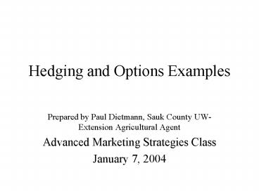 UW-Extension Agricultural Agent - Advanced Marketing Strategies Class