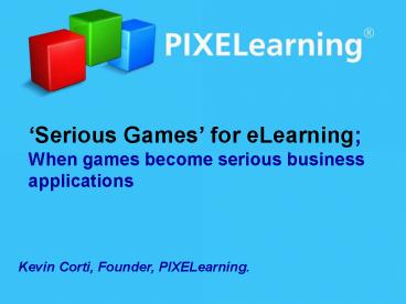 Kevin Corti, Founder, PIXELearning.