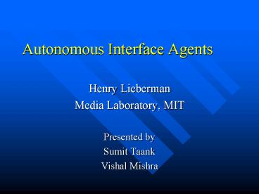 Autonomous Interface Agents PowerPoint PPT Presentation