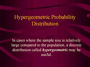Hypergeometric%20Probability%20Distribution PowerPoint PPT Presentation