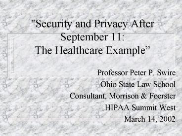 Title: "Security and Privacy After September 11: The Healthcare Example