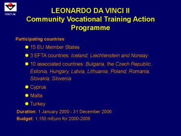 <Notice: Removed> LEONARDO DA VINCI II Community Vocational Training Action Programme PowerPoint PPT Presentation