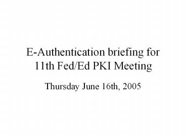 <Notice: Removed> E-Authentication briefing for 11th Fed/Ed PKI Meeting PowerPoint PPT Presentation