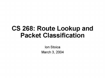 pipeline, and 4-bank 64 Mb SRAMs at 125 MHz - Software gt 1million pps on a 333 MHz Pentium