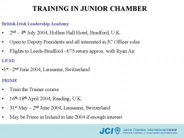 Title: TRAINING IN JUNIOR CHAMBER