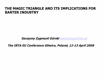 Title: THE MAGIC TRIANGLE AND ITS IMPLICATIONS FOR BARTER INDUSTRY