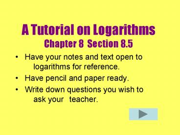 Title: A Tutorial on Logarithms Chapter 8 Section 8'5