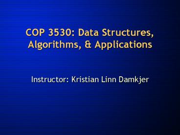 COP 3530: Data Structures, Algorithms, PowerPoint PPT Presentation