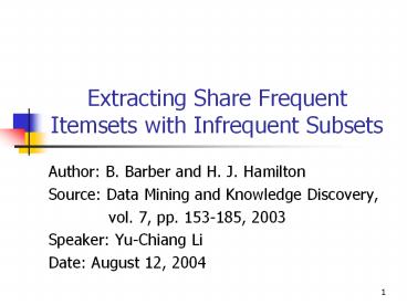 <Notice: Removed> Extracting Share Frequent Itemsets with Infrequent Subsets PowerPoint PPT Presentation