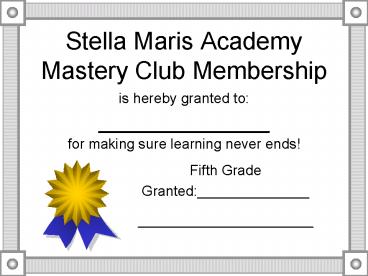 Stella Maris Academy Mastery Club Membership PowerPoint PPT Presentation