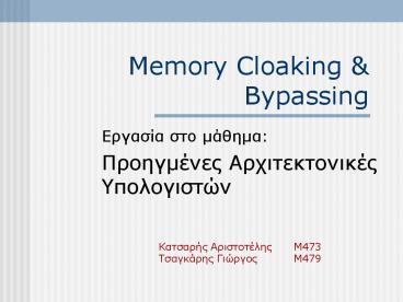 Memory Cloaking - PowerPoint PPT Presentation