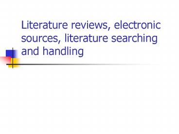 Title: Literature reviews, electronic sources, literature searching and handling