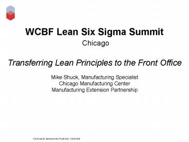Title: WCBF Lean Six Sigma Summit Chicago Transferring Lean Principles to the Front Office Mike Shuck, Manu